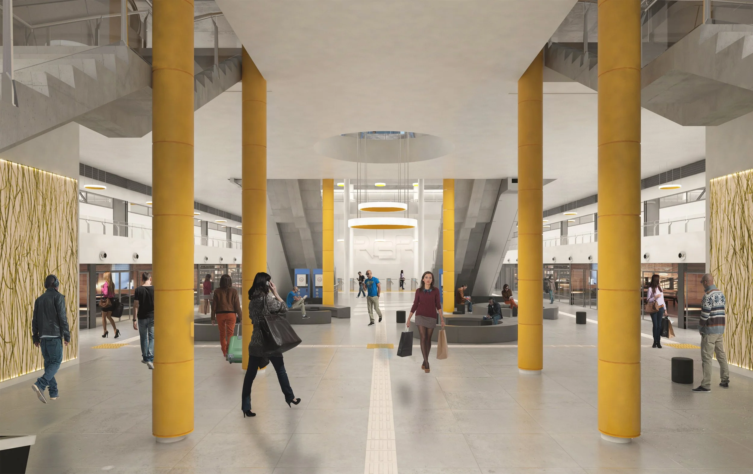 La relevancia del acceso principal a la Estación Central Obelisco, ubicada en la Plaza de la República, es destacada por su ubicación en el corazón del centro histórico y su condición de símbolo icónico de la ciudad. La propuesta arquitectónica busca integrarse de manera respetuosa al entorno mediante un gesto sutil que curva la estructura para definir el acceso a la estación. La forma curvada del techo y las líneas orgánicas se armonizan con los límites del parque, preservando sus áreas verdes y generando un nuevo espacio público dinámico y convocante a la ciudadanía.